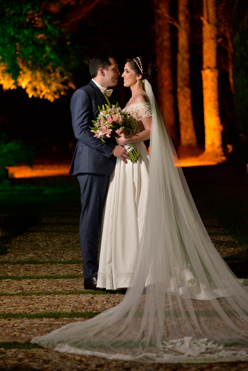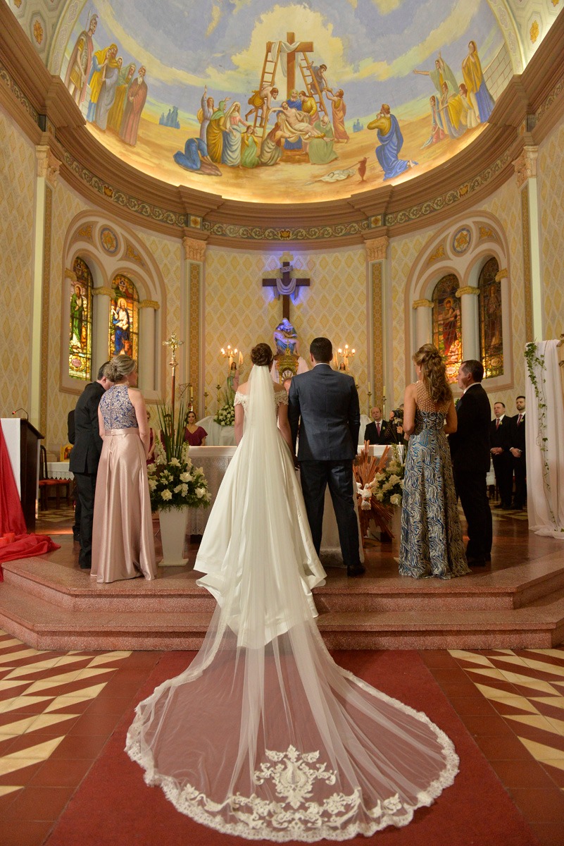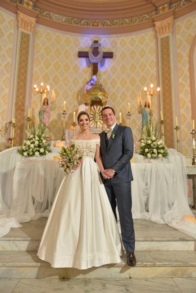 O grande dia, como não poderia deixar de ser, chegou acompanhado de muitas emoções. “Fiquei muito nervosa e emocionada, meu coração parecia que ia explodir. Cheguei com o motorista na igreja e fiquei uns minutos esperando, e nesses momentos eu fiquei muito ansiosa. Dias antes do casamento eu não conseguia nem dormir, só imaginava aquelas portas se abrindo. No dia, a igreja estava cheia, e ver aquilo me deu um nervoso. Daí vi meu noivo lá na frente e me concentrei nele. Foi lindo. E eu casei com o vestido que queria”.