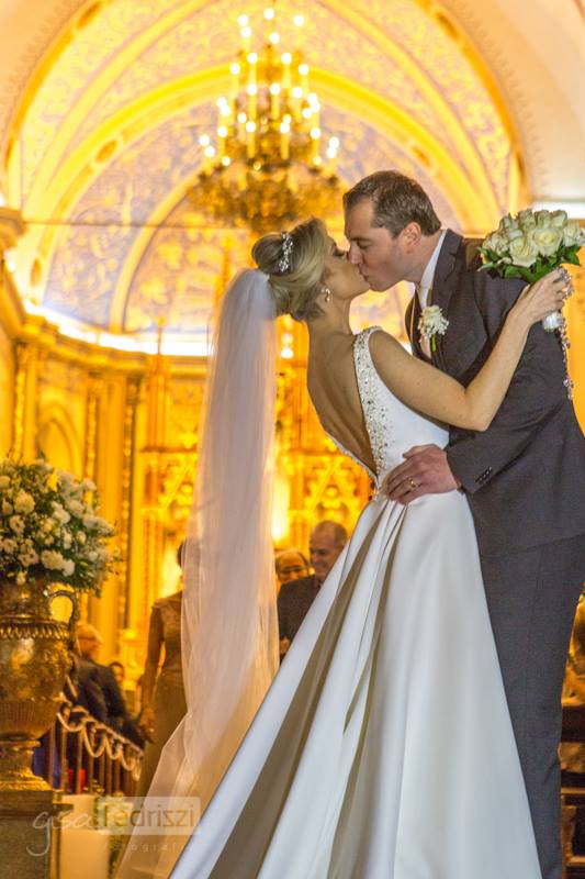 Talita Massoni conheceu Igor André Krakheche no baile de formatura de uma amiga em comum. “Ele me convidou para dançar no baile e estamos dançando até hoje…”, ela diz. Para a dança mais importante dos dois, Talita vestiu um Ana Dotto: no casamento, alguns anos depois daquele baile.