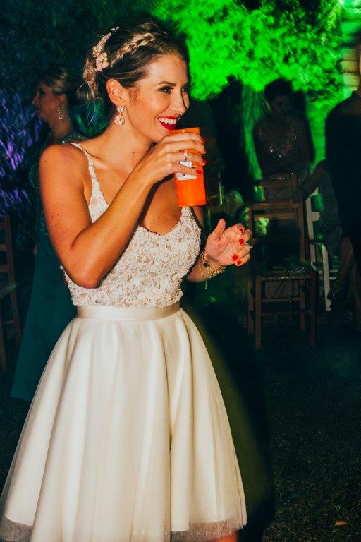 Para a festa de casamento, Greici usou uma saia curta para ficar ainda mais confortável. “Já no primeiro dia, disse à Ana que queria trocar de vestido no meio da festa, porque eu não conseguia me adaptar com longo. Ela entendeu bem”.