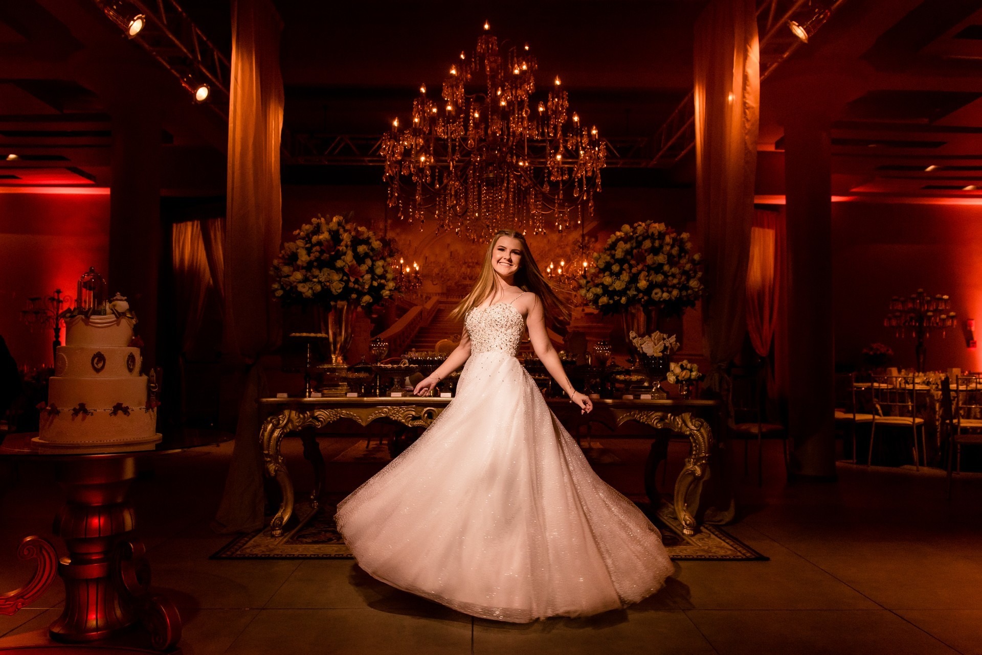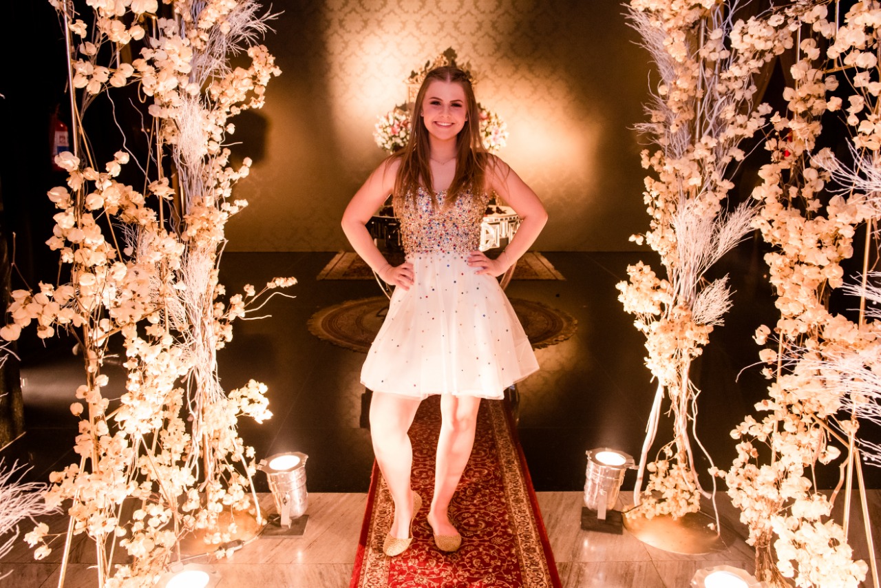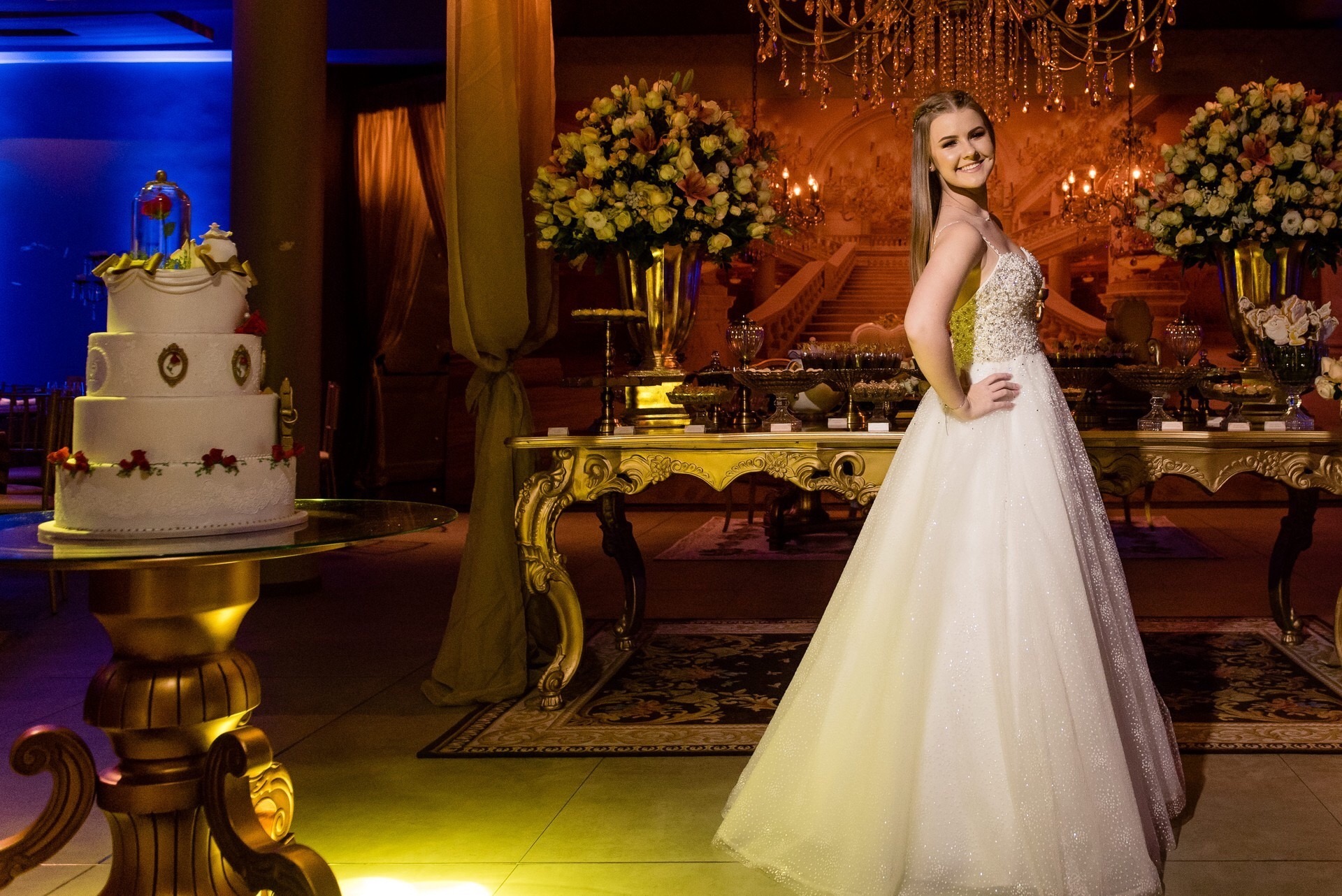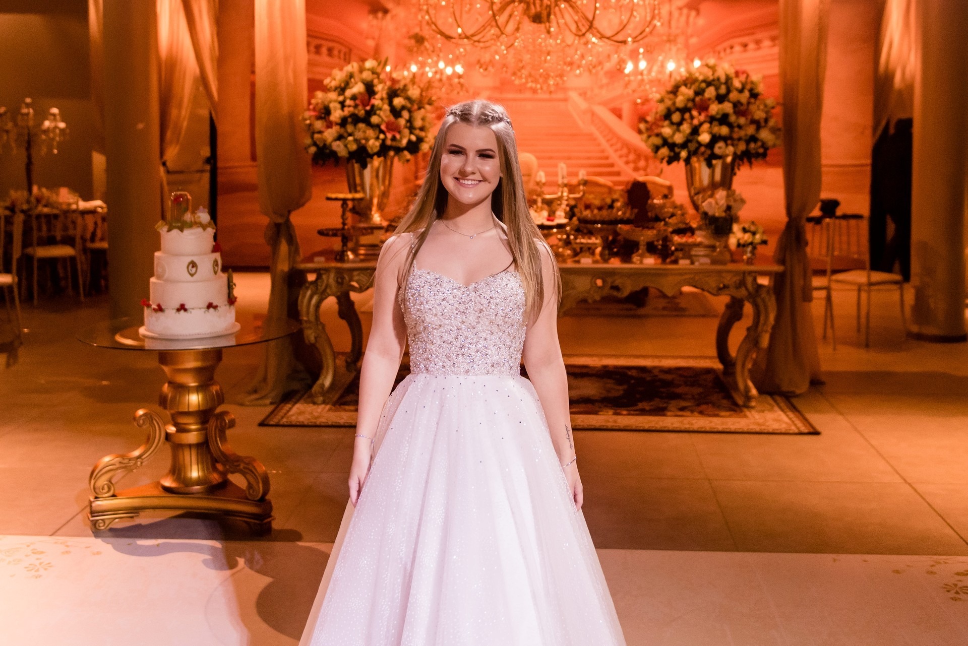 Vestida como uma princesa. Foi assim que Giordana Zaro Fiorio celebrou seus 15 anos em uma festa no Recreio da Juventude.