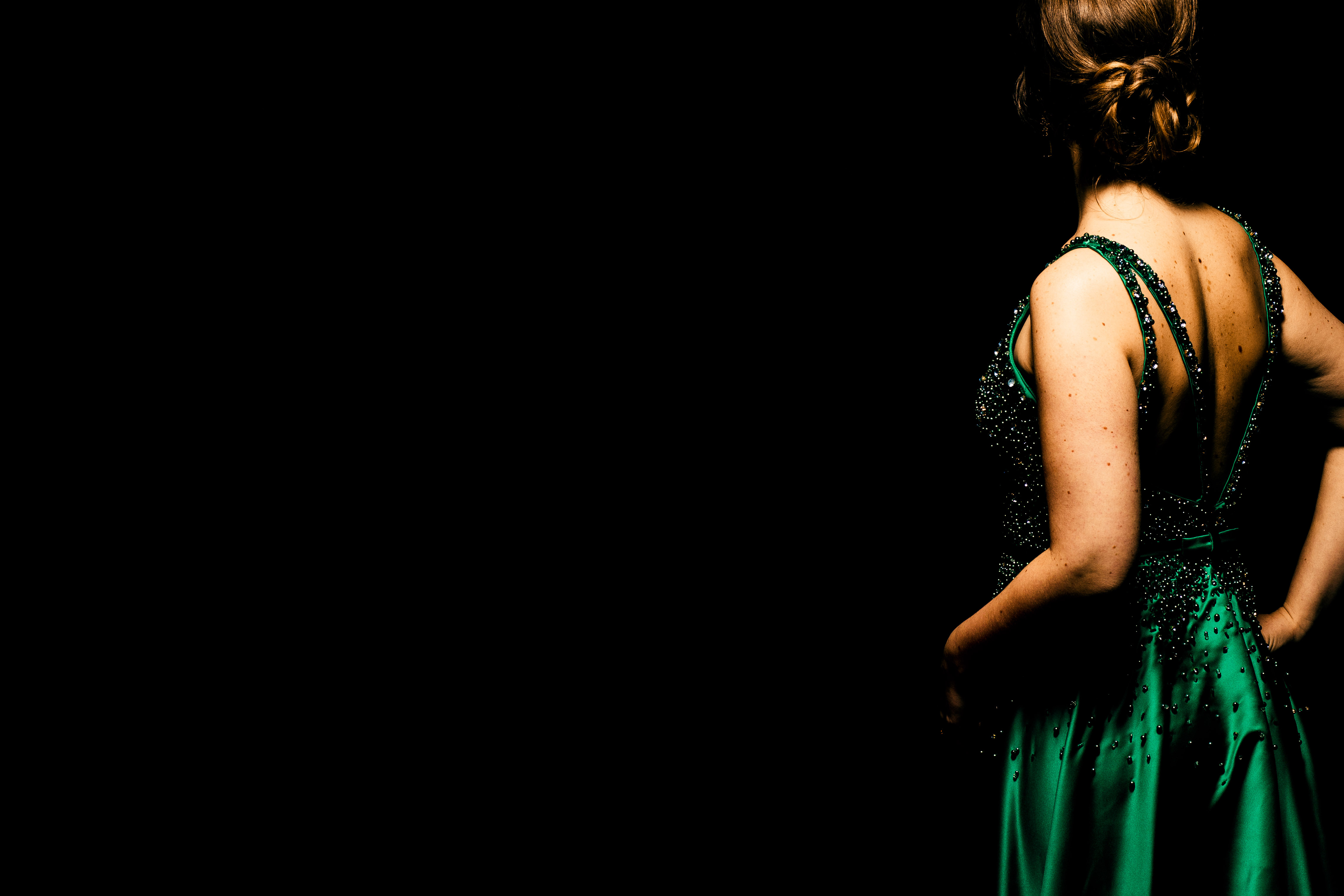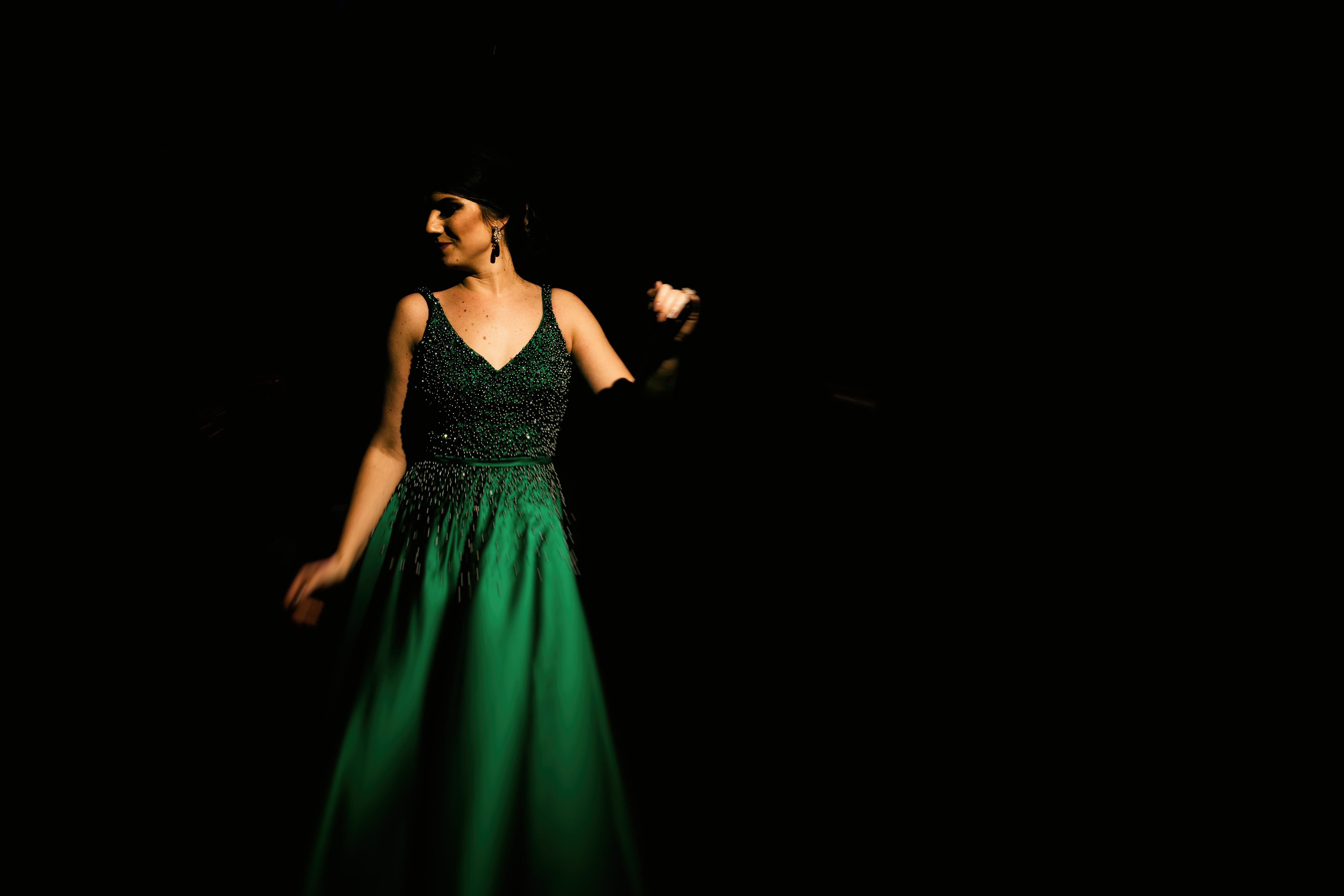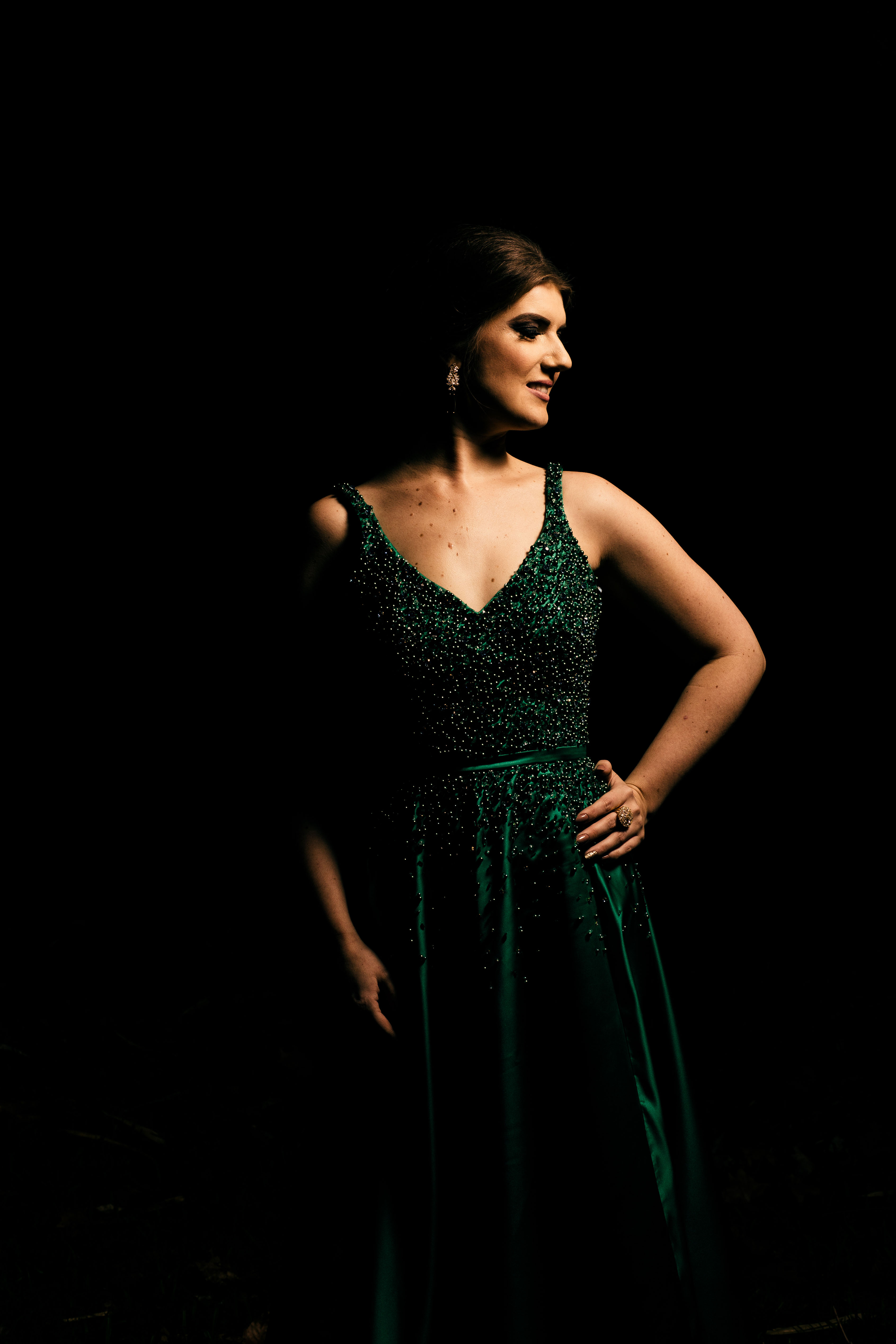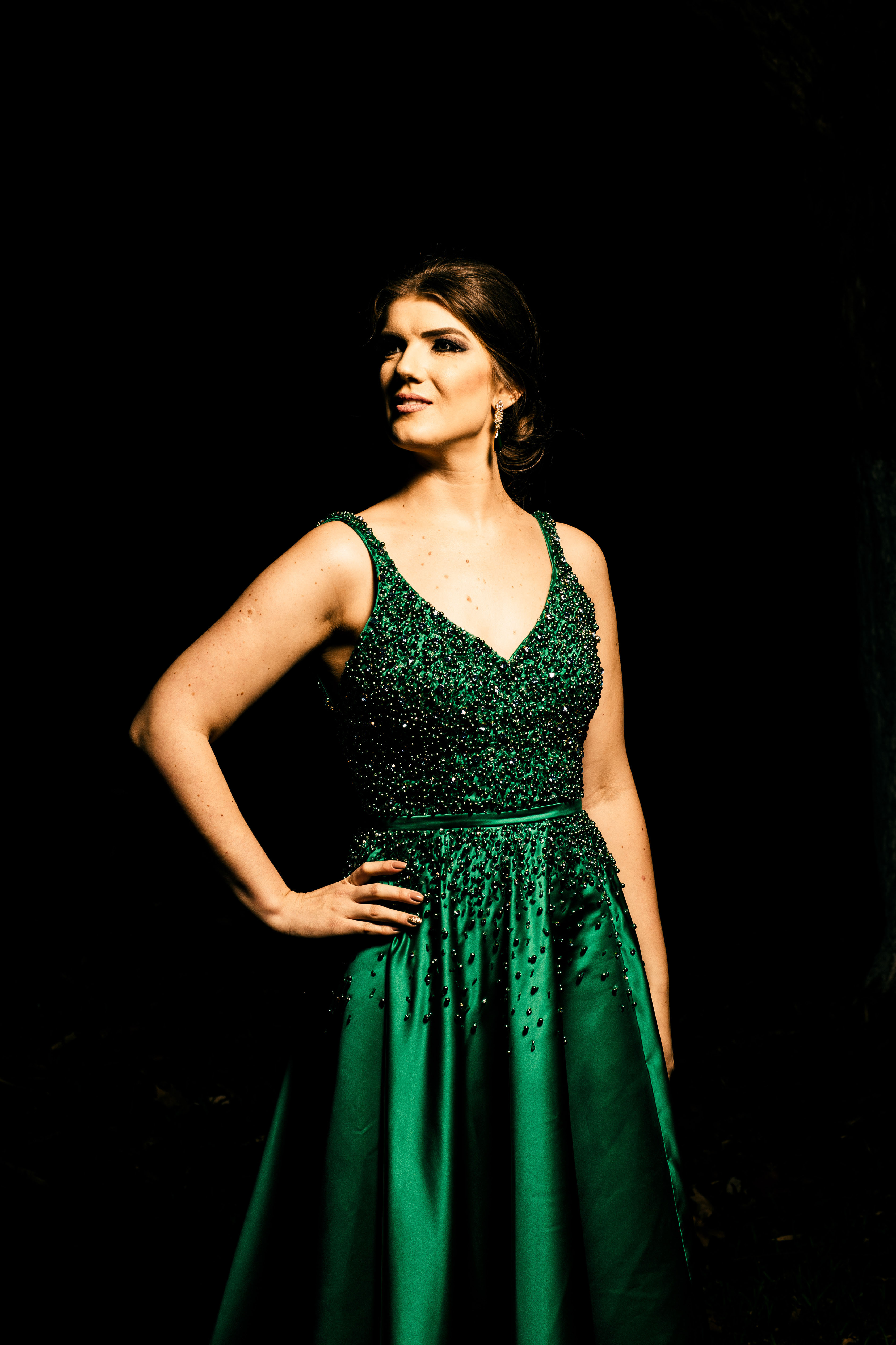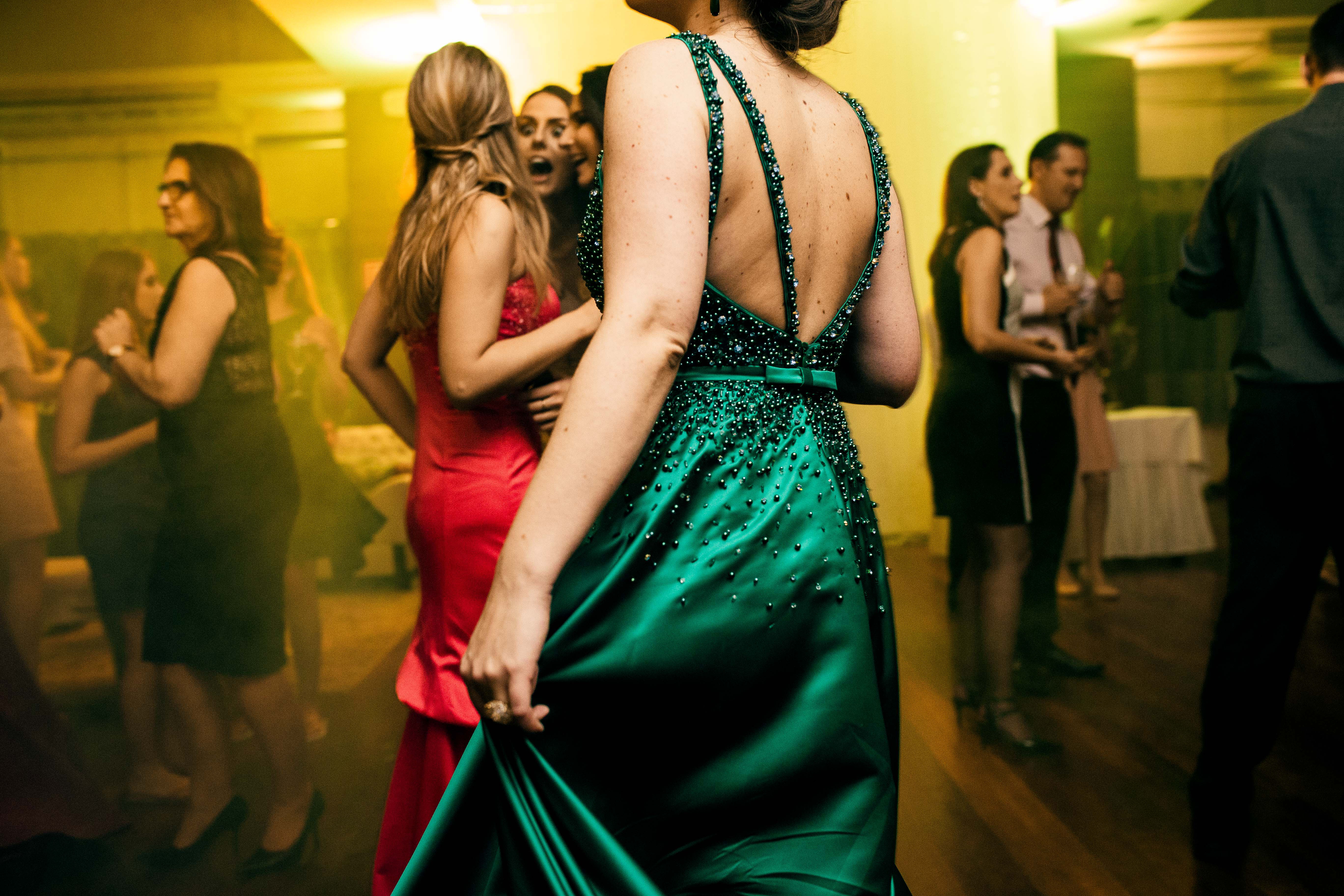 Bárbara ainda se permitiu experimentar. “Minha ideia era um vestido liso. A Ana sugeriu um bordado em pedraria verde cristal e azulada. Disse que eu tinha que brilhar na festa. Adaptamos e eu amei! Junto ao cabelo e maquiagem, fiquei me sentindo absolutamente maravilhosa e super feliz com o resultado!”
