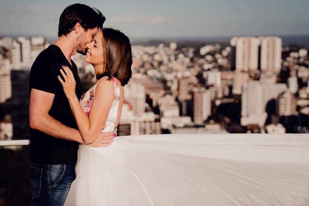 Quando chegou no atelier Nicole já chegou com a ideia de como queria que fosse o seu vestido de noiva: respeitando o seu estilo, mais clássico, não tão ousado. E levou para a Ana um tule com aplicação de pedras que havia comprado em uma loja, para que fosse a parte de cima da saia. O vestido, além da aplicação da delicada saia com pedrinhas, é de manga comprida, estilo retrô, do jeito que Nicole gosta de se vestir. “Eu não imaginaria um vestido diferente.” Nicole saiu do atelier não apenas com um, mas com dois vestidos Ana Dotto, já que apaixonou-se por um vestido claro de estampas florais que já estava pronto e à venda. Usou-o para as fotos do pré wedding.