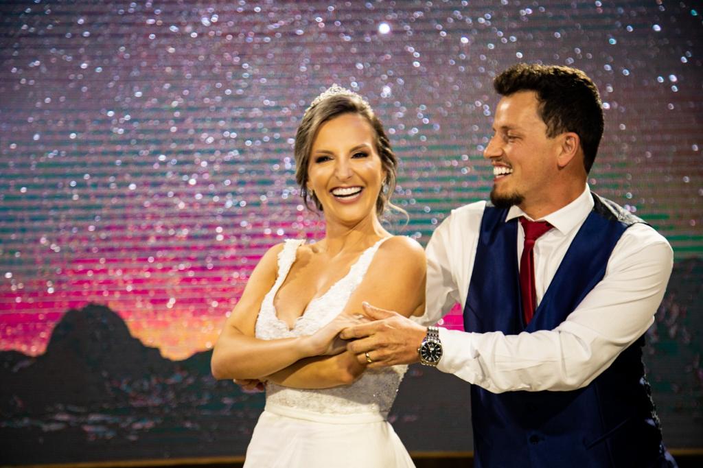 Um ano entre namoro e noivado até o pedido de casamento. Foi tempo suficiente para Tatiane Dal Bó e Vinícius Simioni enxergarem que queriam estar juntos para a vida toda. O dia 12 de junho de 2021 foi inesquecível para ela. A certeza do ‘para sempre’ veio no Dia dos Namorados. “Estávamos em Gramado, passando o final de semana lá. A gente jantou e, quando chegamos no hotel, ele me pediu em casamento.”